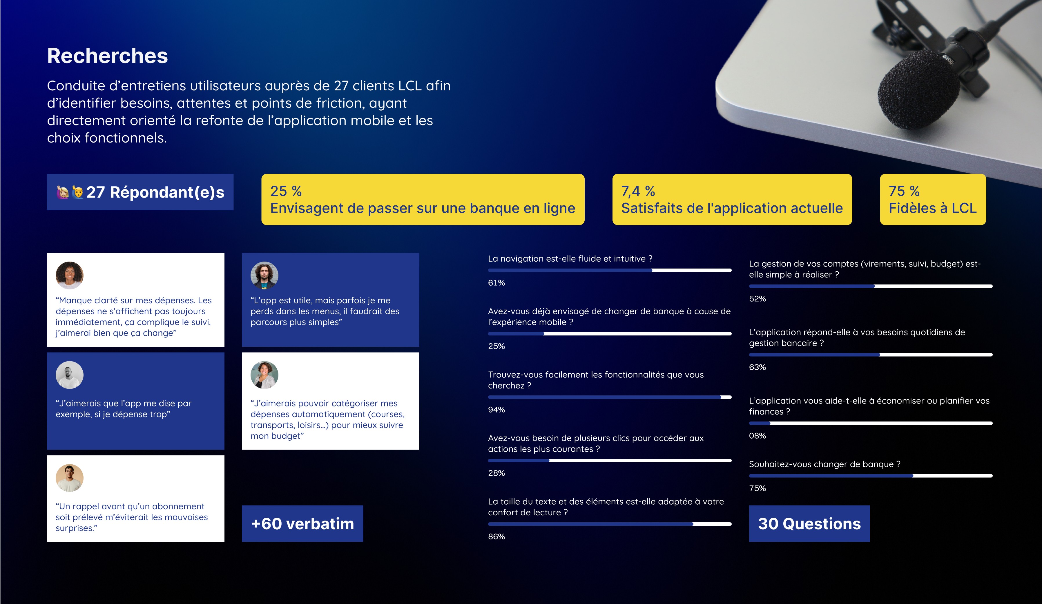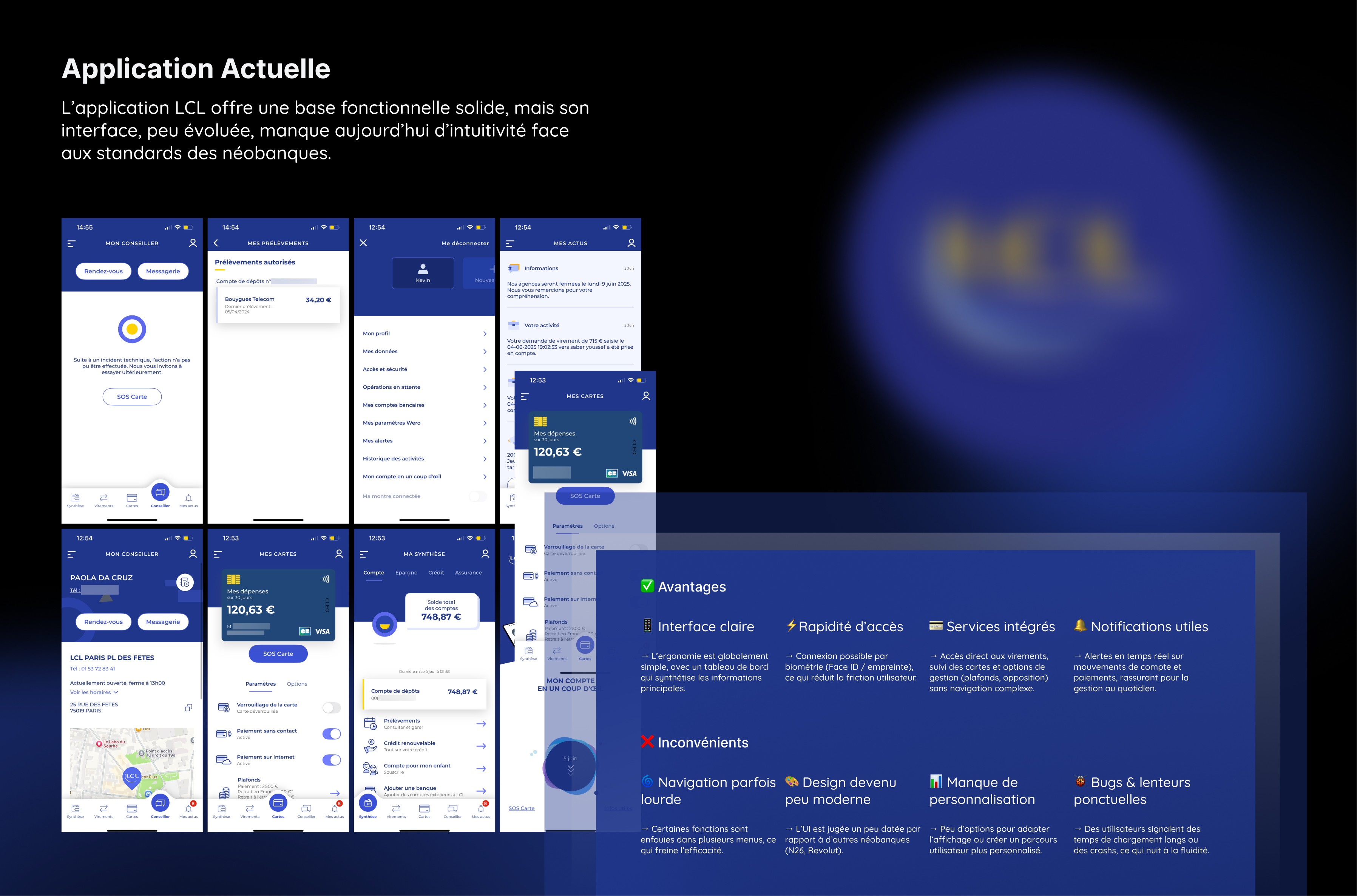 Face à la montée des néobanques, perçues comme plus simples et intuitives, ce projet propose une refonte conceptuelle de LCL axée sur les usages réels et l’amélioration de l’expérience bancaire digitale.
